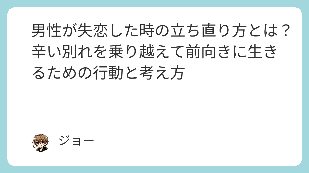 失恋を経験すると、「どうすれば早く立ち直れるの?」「この気持ちはいつまで続くの?」と、さまざまな疑問が浮かんできますね???????? 誰もが通る道だからこそ、多くの男性が同じような悩みを抱えています????✨
